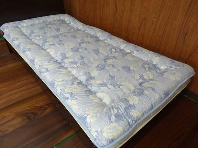 側生地は国産でお肌にも優しい綿100%生地、中綿には吸湿性・発散性・保温力に優れたフランス産ウールとふっくらカサ高性に優れヘタリにくいポリエステルわたを50%ずつ使用、中芯にはポリエステル100%の固綿を使用しており身体の沈み込みを防ぎます。3つ折りタイプでコンパクトに収納可能 軽量でとても扱い易い敷き布団となっております。