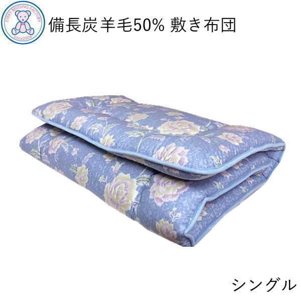 敷布団 シングル 日本製 敷き布団 備長炭 羊毛混 敷ふとん シングルサイズ フランス産 ウール50% 軽量 固綿 ボリューム 軽い 敷きふとん 国産 しきふとん