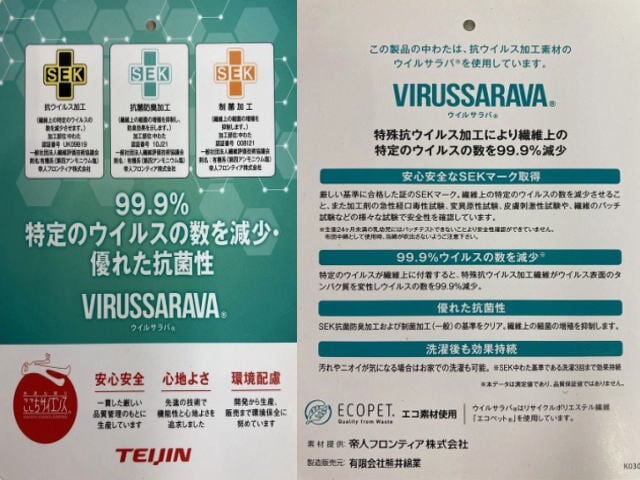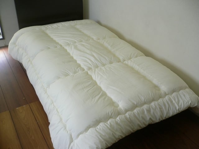オゾン殺菌加工は、ウイルスの不活性化、脱臭などに効果があります。 抗ウイルス加工は、帝人ウィルサラバを使用で、生地に付着した特定のウイルス数を99.9%減少させます。中綿には、中空ポリエステル100%を使用しており、埃が出にくく、ふっくらカサ高性に優れヘタリにくいお布団です。羊毛や羽毛に比べ臭いが少なく、毛に含まれる動物特有のニオイが苦手な方や動物アレルギーをお持ちの方にもおすすめです。ご注文をいただいてからお仕立て致します