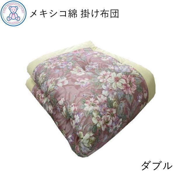 綿100% 和掛け布団 ダブル 日本製 190×200cm メキシコ 綿100% 綿サテン 選べる全5柄 ピンク/ブルー