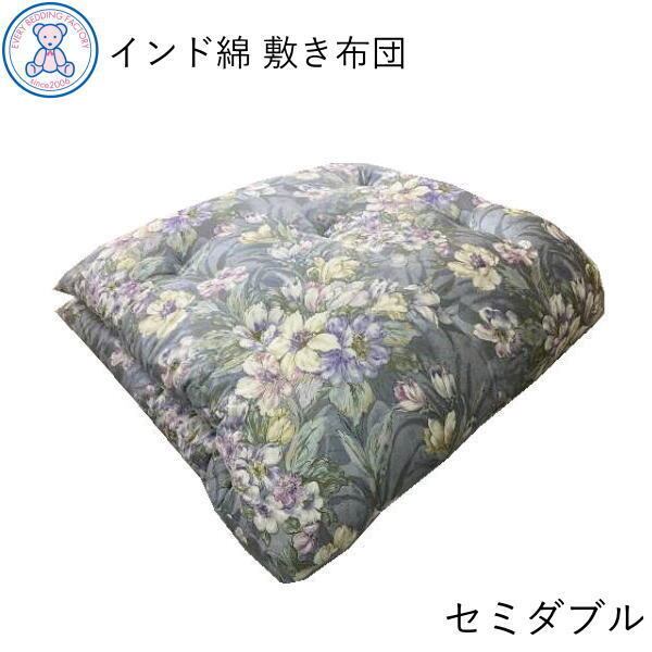 綿100% 和敷き布団 セミダブル 120×200cm 日本製 インド 綿100% 綿サテン 選べる全5柄 ピンク/ブルー