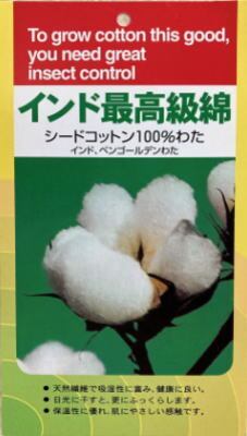 中綿には、インド綿を使用。繊維が太く短くコシの強い天然素材です。しっかり丈夫なので敷き布団に適しているといわれています。吸湿性に富み、日光に干すとふっくらし、綿わた独特の懐かしく温かいお日様のにおいが感じられます。重量感があり、昔ながらのズッシリ重たいお布団がお好みのお客様にも根強い人気です。